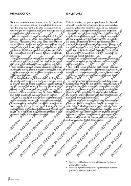 This course in Jazz Arranging guides the reader, step by step, from the grassroots to more advanced and complex ways of writing. It is never the intention to present concrete rules without proper explanation. On the contrary, the explanations given will cover the questions time and again asked by students as well as the issues arising when working in an artistic situation. Through refined verbalization and a vast number of musical examples this book should contribute to a clear understanding of these guidelines, and foster the student’s ability to realize the issues when arranging.