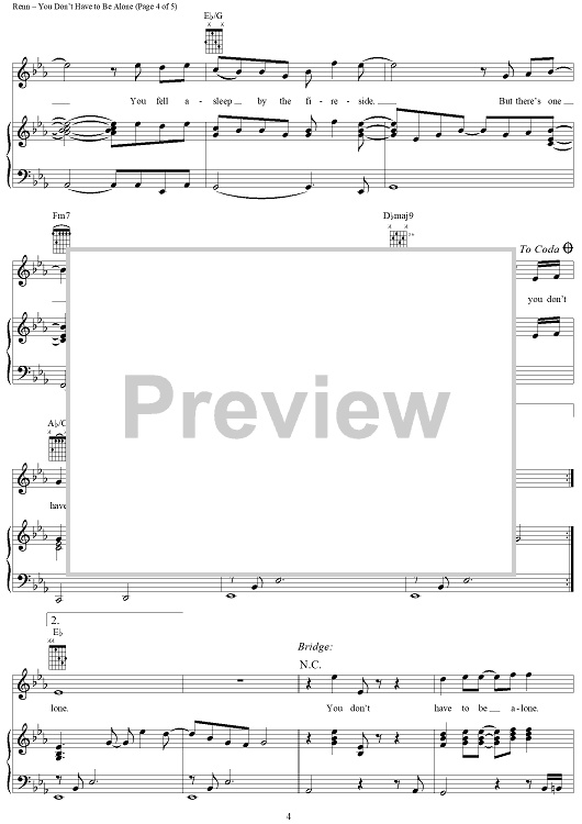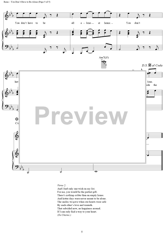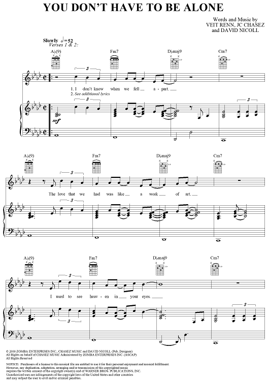 Digital Sheet Music for You Don't Have to Be Alone by Veit Renn, David Nicoll, *Nsync, JC Chasez scored for Piano/Vocal/Chords; id:284072