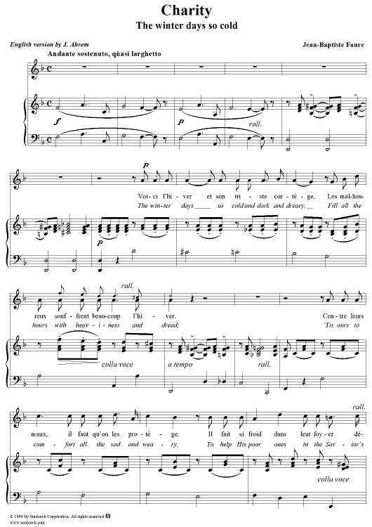 Digital Sheet Music for Charity (The Winter Days So Cold) by Jean-Baptiste Faure scored for Voice/Piano; id:265560