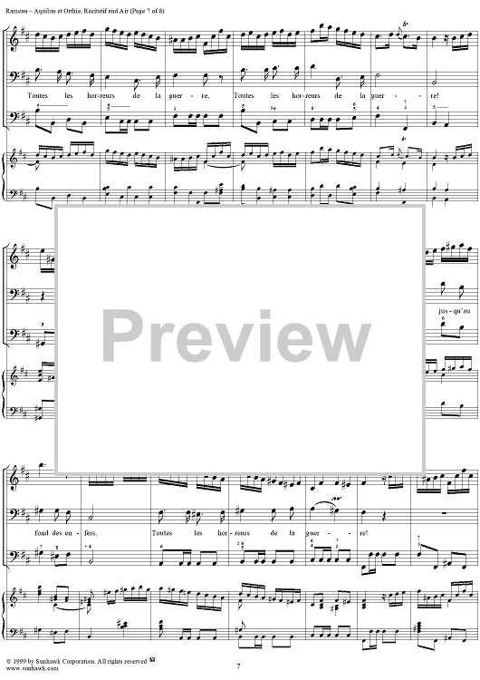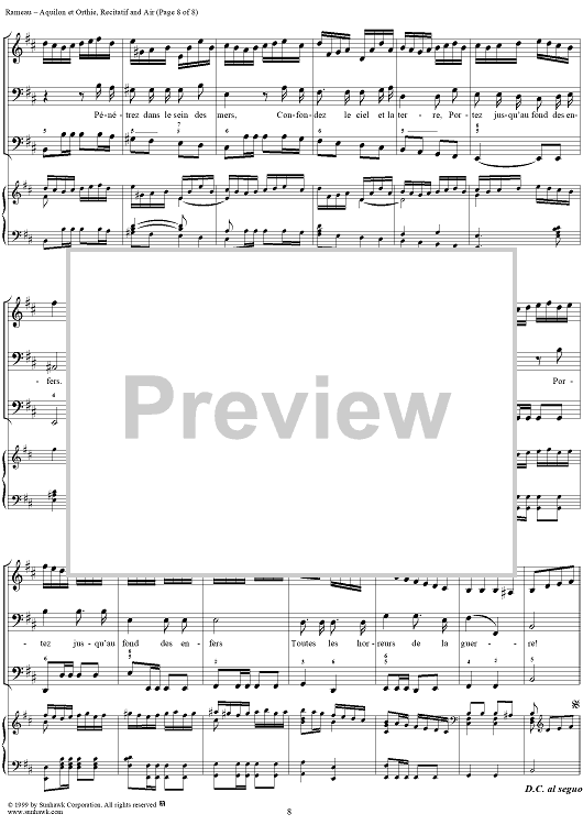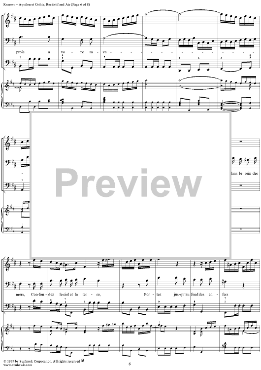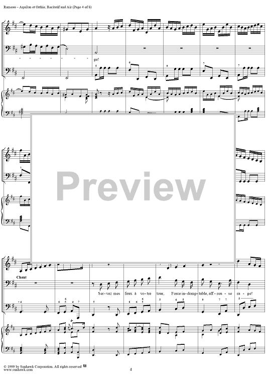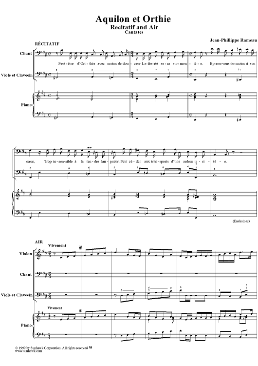 Digital Sheet Music for Cantates, Aquilon et Orthie, Recitatif and Air by Jean-Philippe Rameau scored for Voice/Piano; id:255420