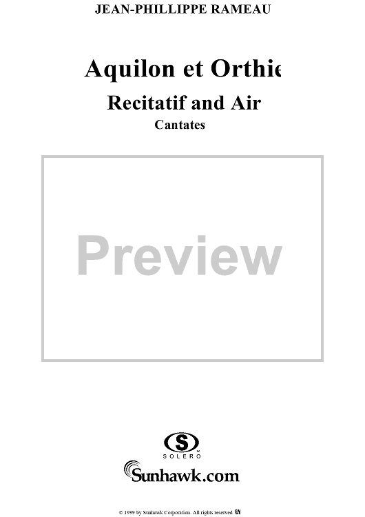 "Cantates, Aquilon et Orthie, Recitatif and Air" Sheet Music by Jean-Philippe Rameau