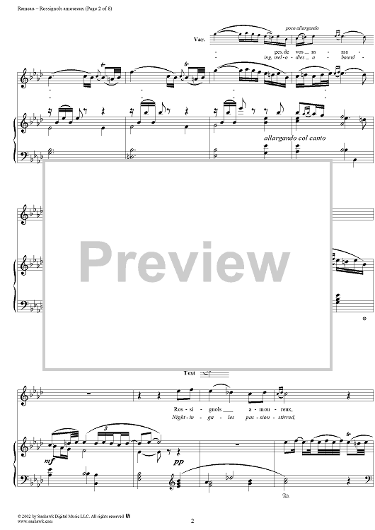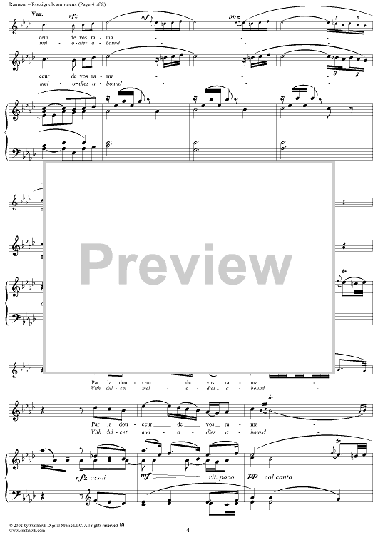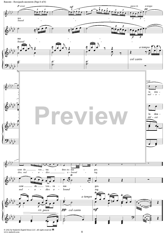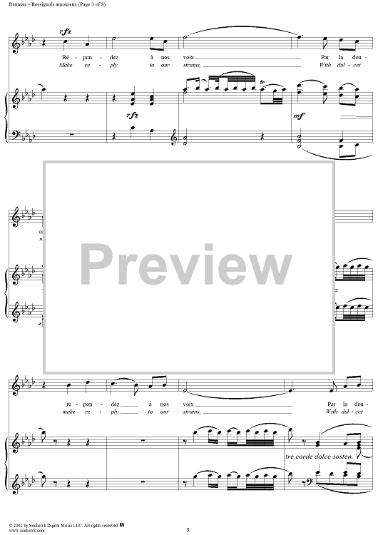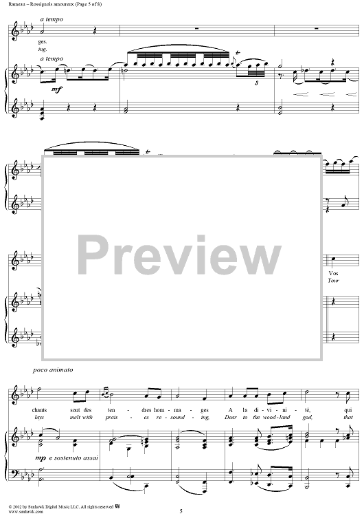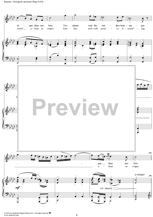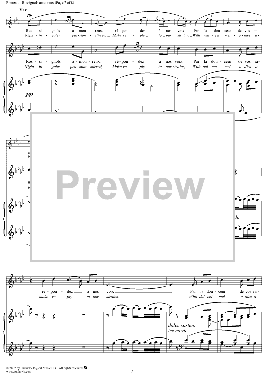Digital Sheet Music for Hippolyte et Aricie, Rossignols amoureaux (Nightingales passion-stirred) by Jean-Philippe Rameau scored for Voice/Piano; id:253851