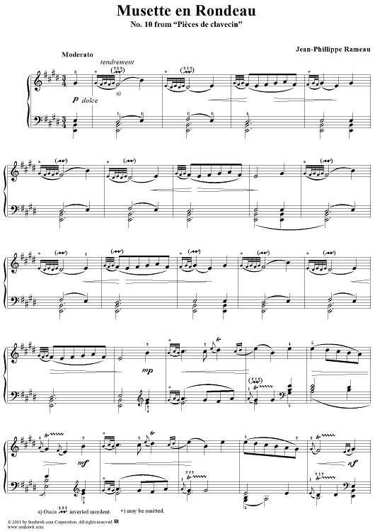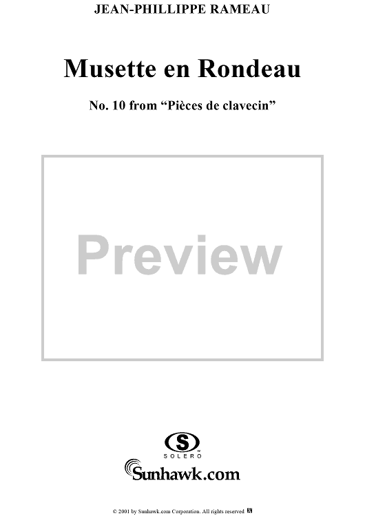 Digital Sheet Music for Musette en Rondeau - No. 10 from "Pieces de clavecin" 1724 by Jean-Philippe Rameau scored for Piano Solo; id:262441