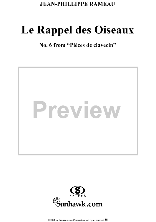 Digital Sheet Music for Rappel des Oiseaux, Le - No. 6 from "Pieces de clavecin" 1724 by Jean-Philippe Rameau scored for Piano Solo; id:262838