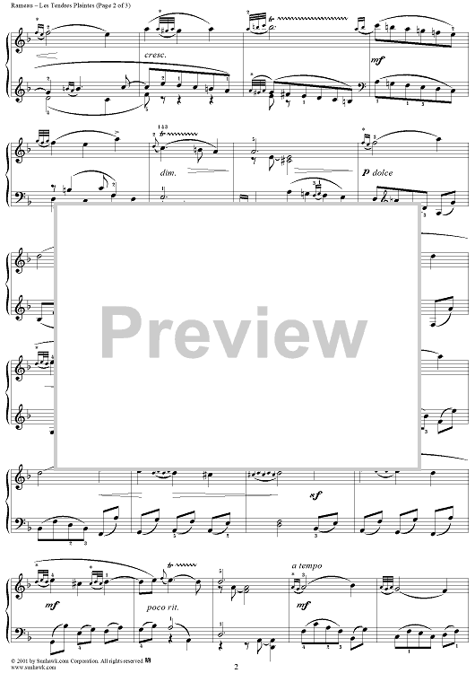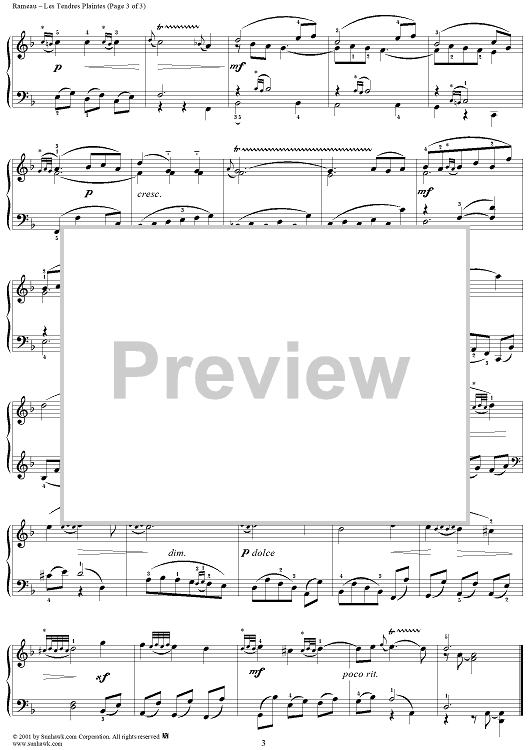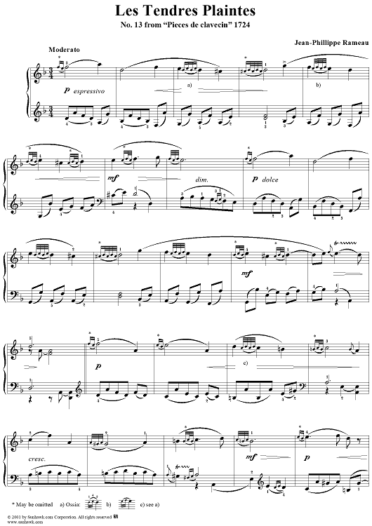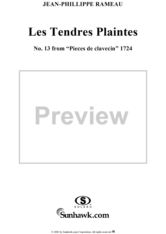 Digital Sheet Music for Tendres Plaintes, Les - No. 13 from "Pieces de clavecin" 1724 by Jean-Philippe Rameau scored for Piano Solo; id:253560
