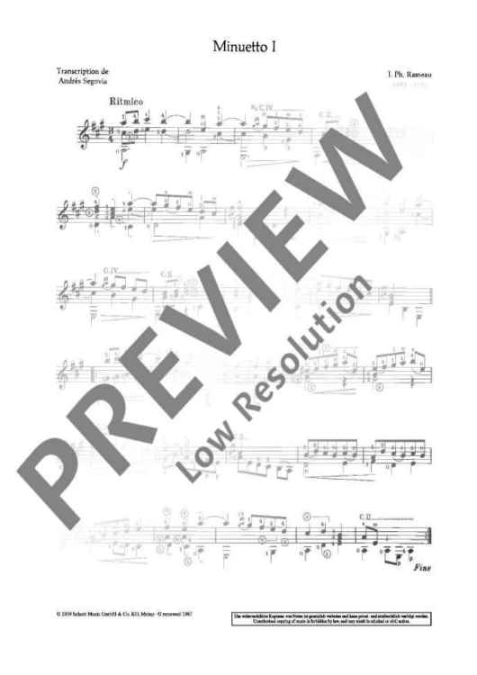 Digital Sheet Music for Two Minuets by Jean-Philippe Rameau scored for Guitar; id:482560