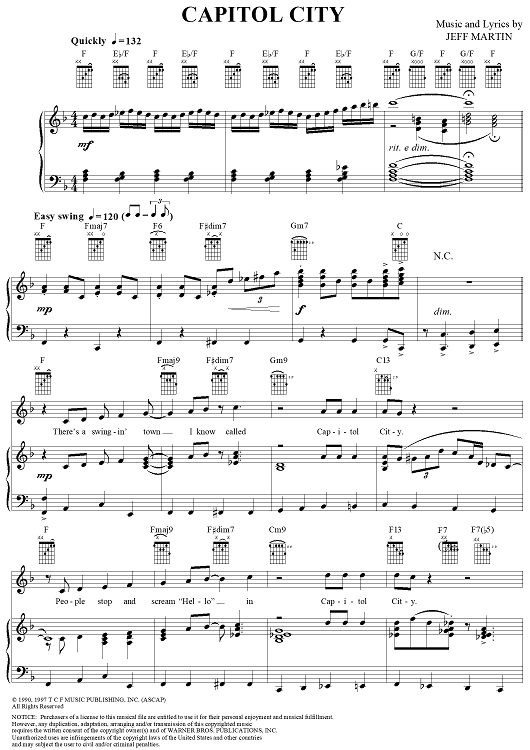 Digital Sheet Music for Capitol City by Jeff Martin scored for Piano/Vocal/Chords; id:293526