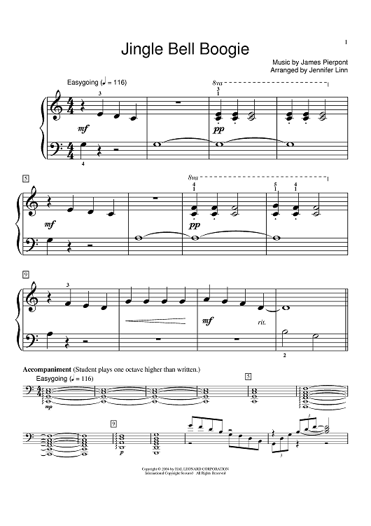 Digital Sheet Music for Jingle Bell Boogie by James Pierpont, Jennifer Linn scored for Piano; id:379151