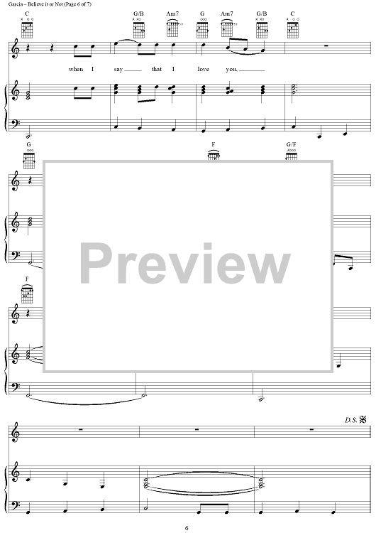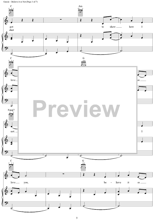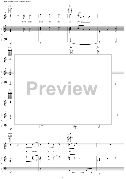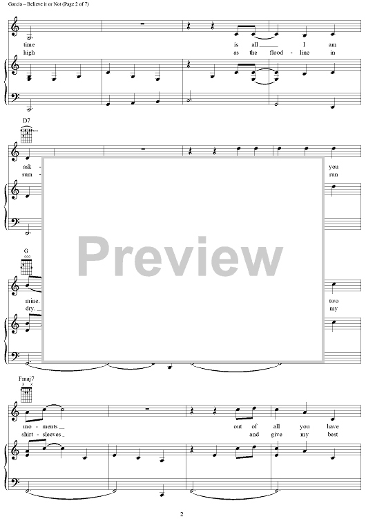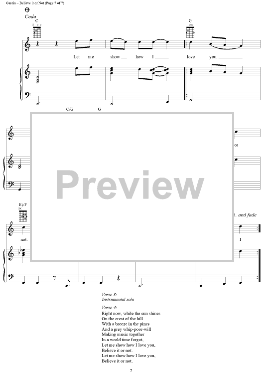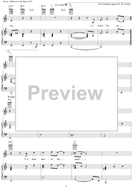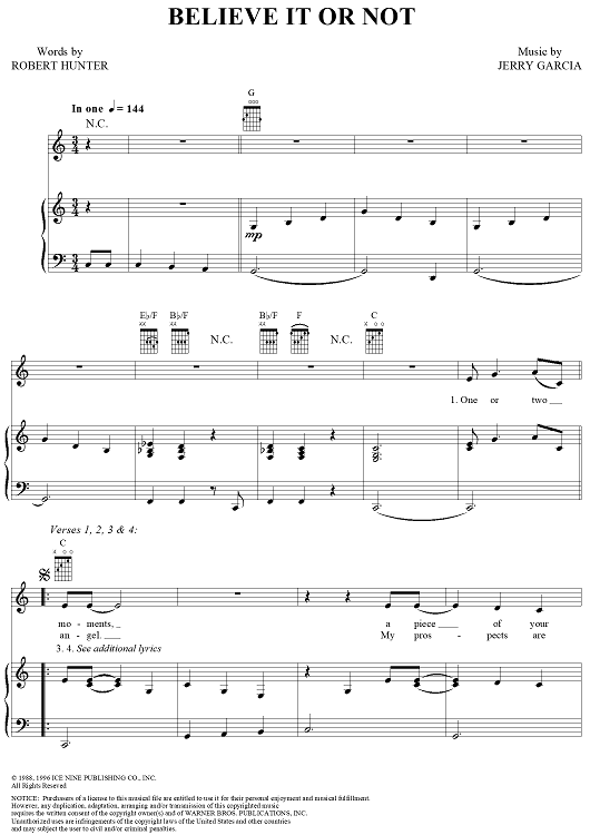 Digital Sheet Music for Believe It Or Not by Jerry Garcia, Robert Hunter, Grateful Dead scored for Piano/Vocal/Chords; id:189366