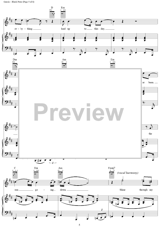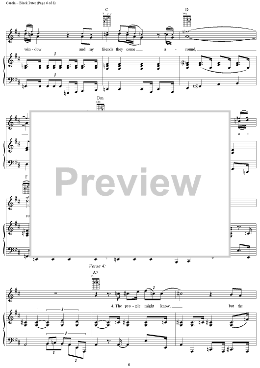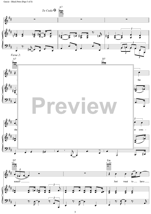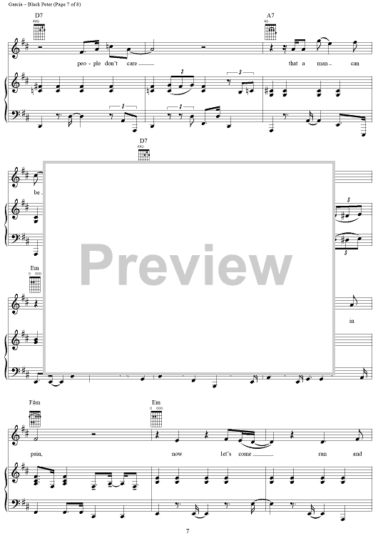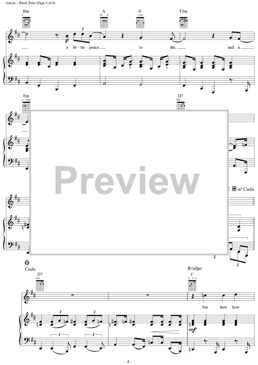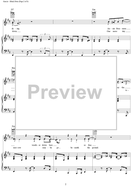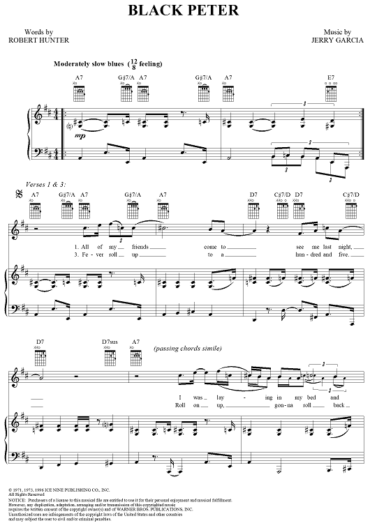Digital Sheet Music for Black Peter by Jerry Garcia, Robert Hunter, Grateful Dead scored for Piano/Vocal/Chords; id:269200