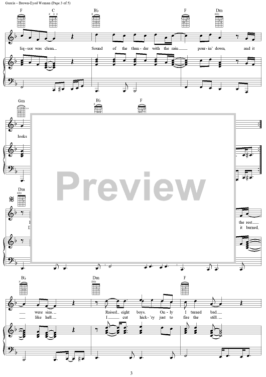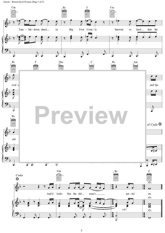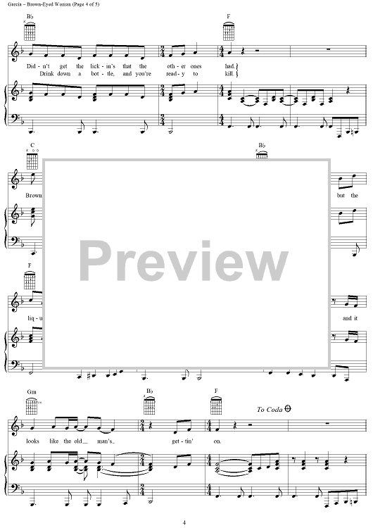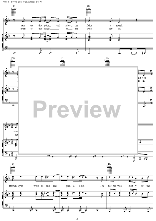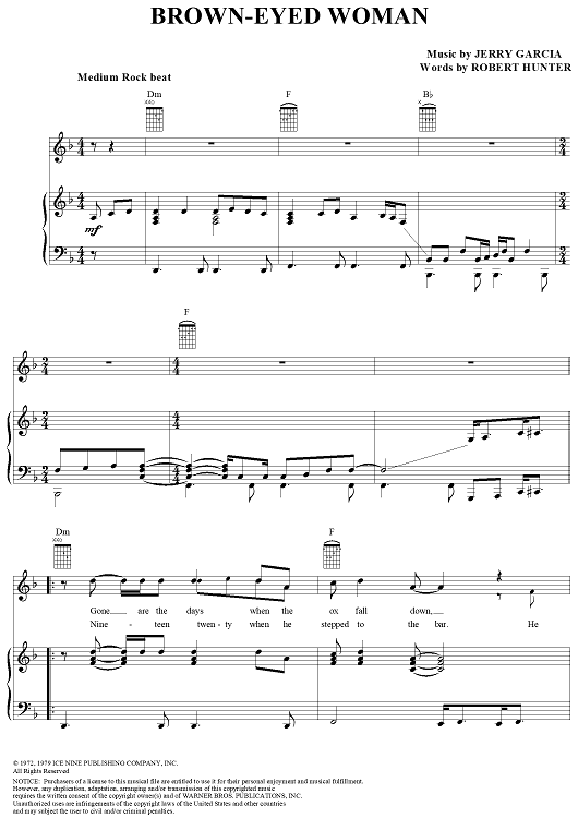 Digital Sheet Music for Brown-Eyed Woman by Jerry Garcia, Grateful Dead scored for Piano/Vocal/Chords; id:269202