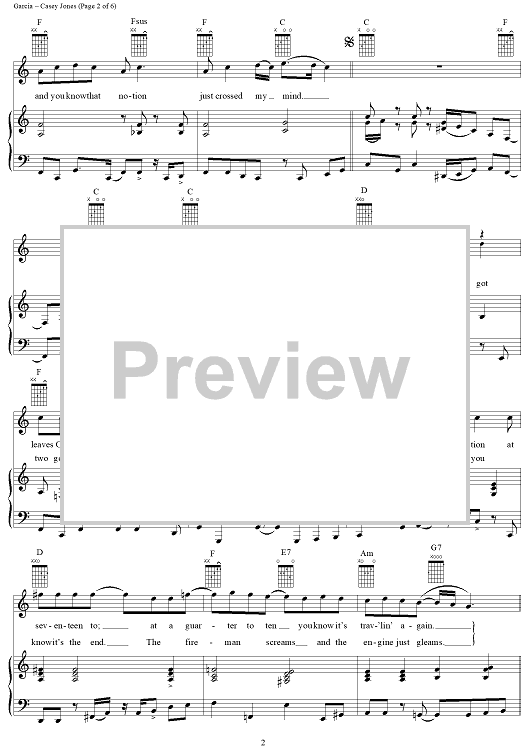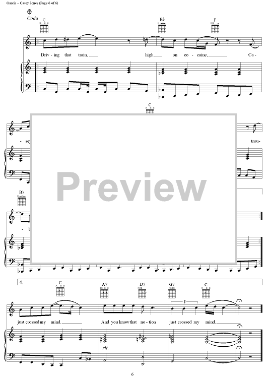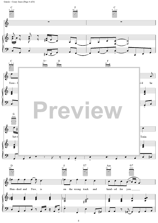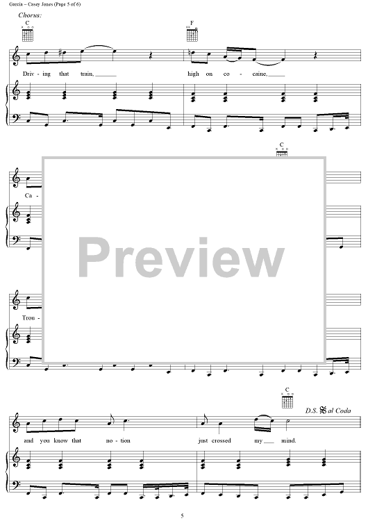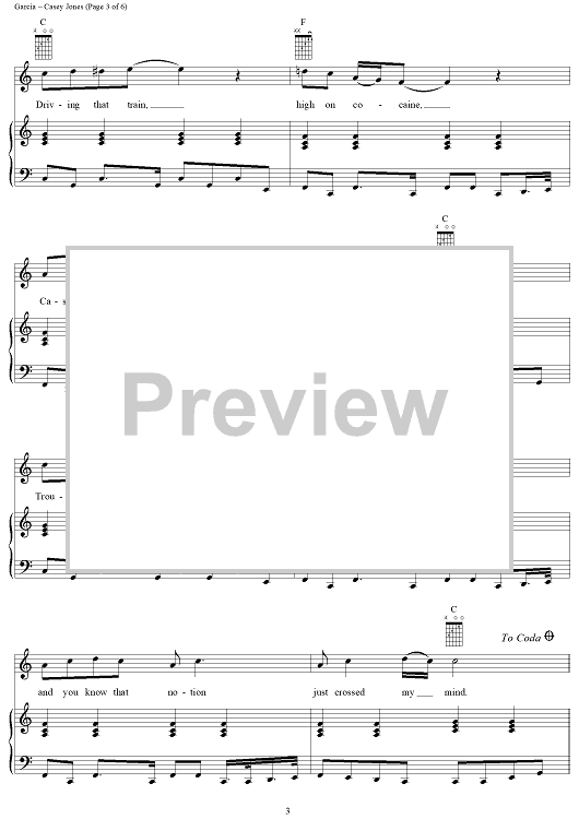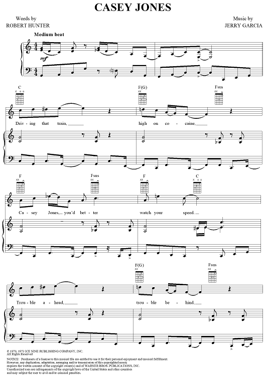 Digital Sheet Music for Casey Jones by Jerry Garcia, Grateful Dead scored for Piano/Vocal/Chords; id:268746