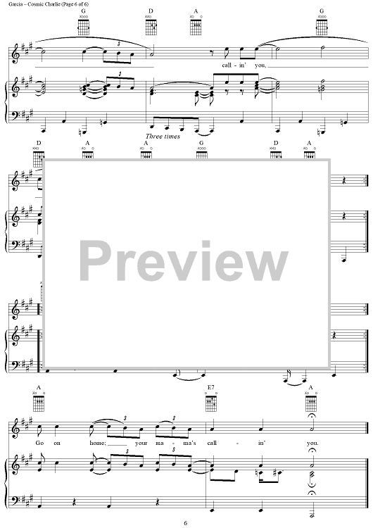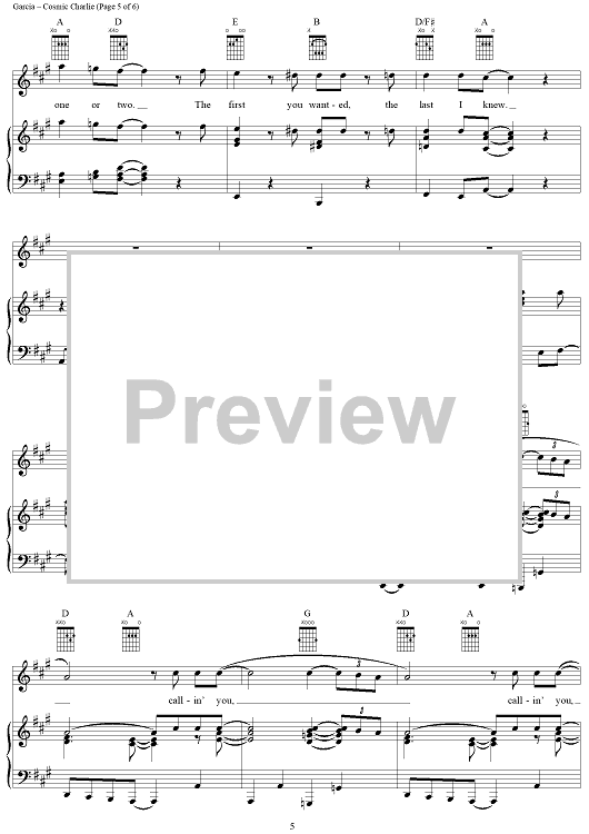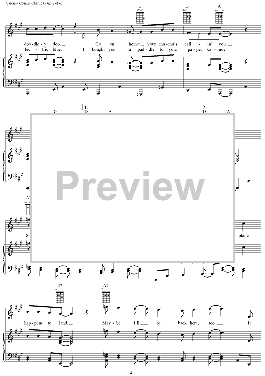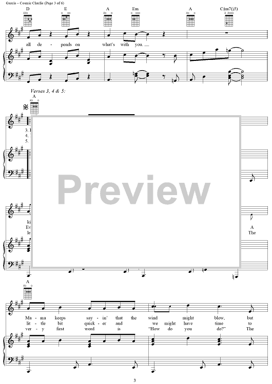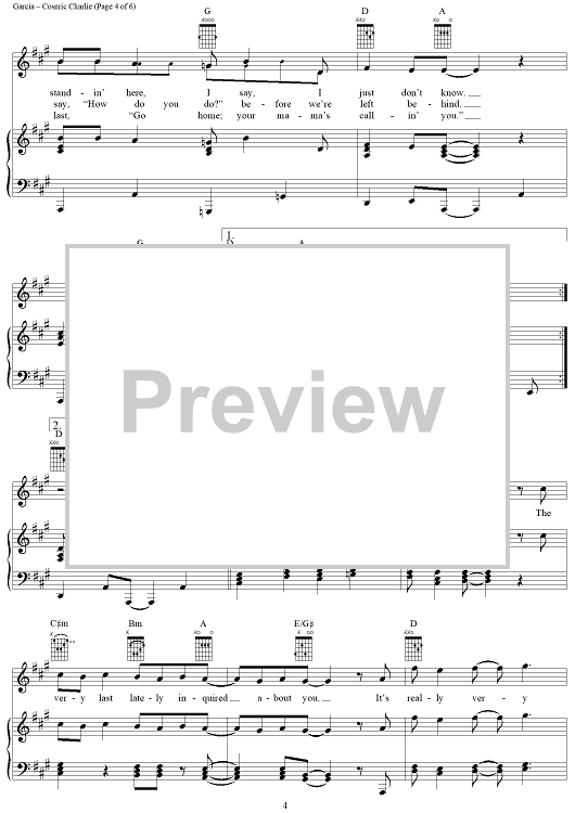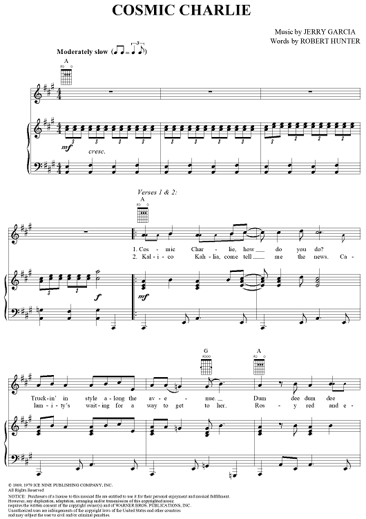 Digital Sheet Music for Cosmic Charlie by Jerry Garcia, Robert Hunter, Grateful Dead scored for Piano/Vocal/Chords; id:268758