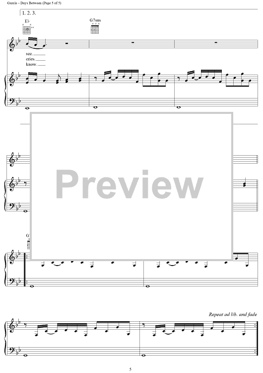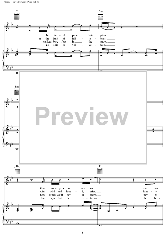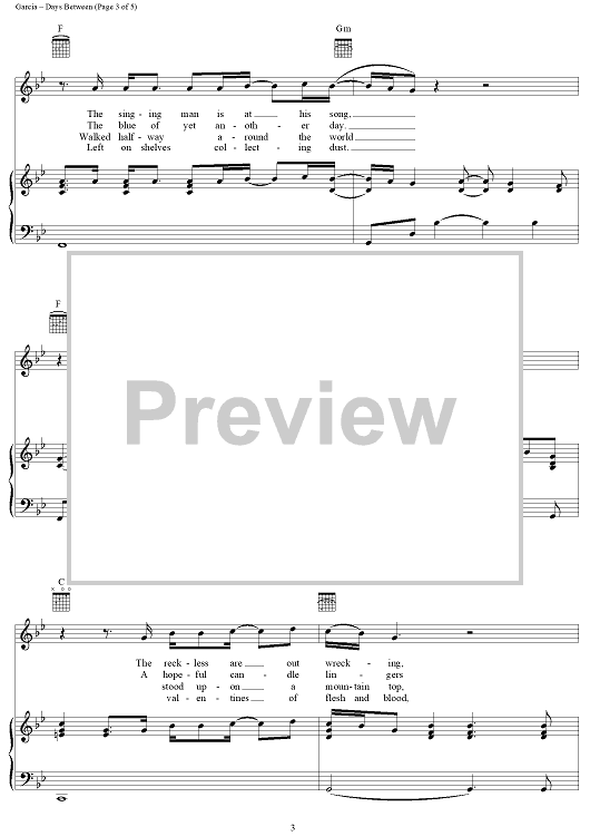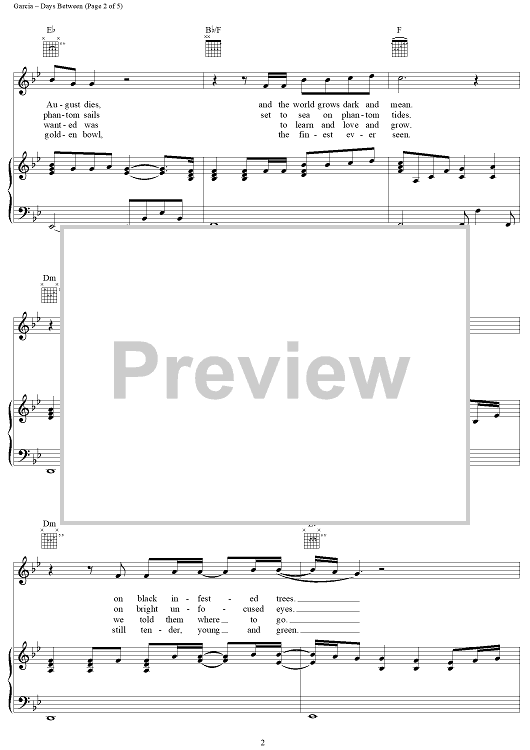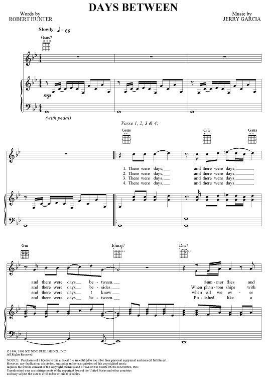 Digital Sheet Music for Days Between by Jerry Garcia, Robert Hunter, Grateful Dead scored for Piano/Vocal/Chords; id:120373