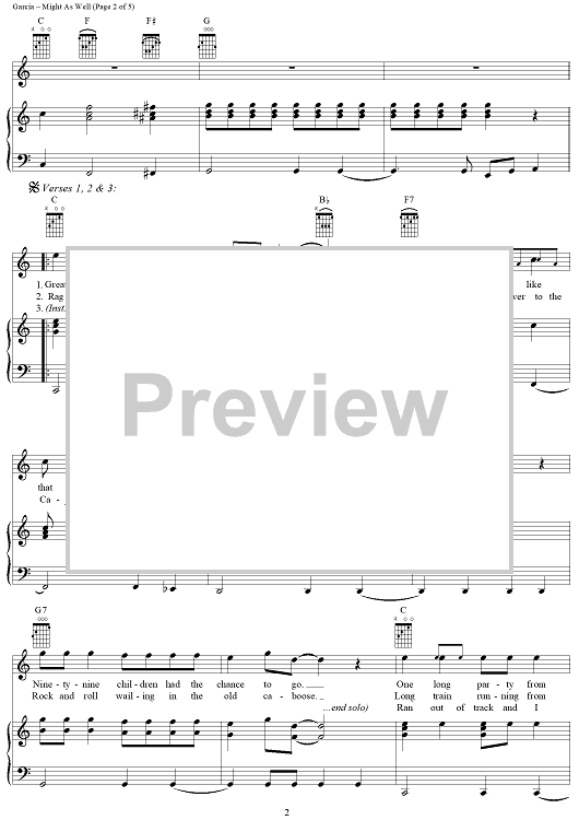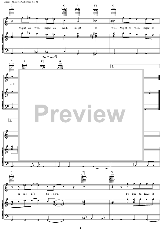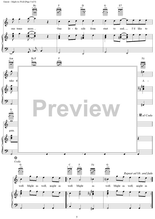 Digital Sheet Music for Might as Well by Jerry Garcia, Robert Hunter, Grateful Dead scored for Piano/Vocal/Chords; id:268797