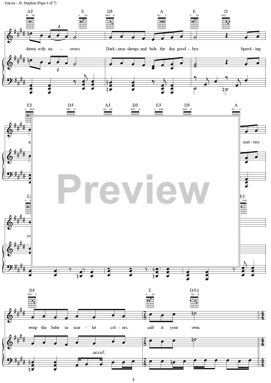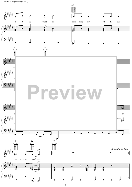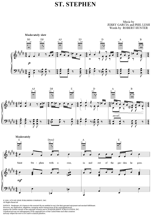 Digital Sheet Music for St. Stephen by Jerry Garcia, Robert Hunter, Phil Lesh, Grateful Dead scored for Piano/Vocal/Chords; id:268993