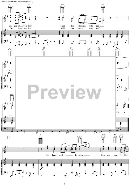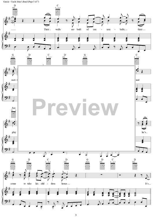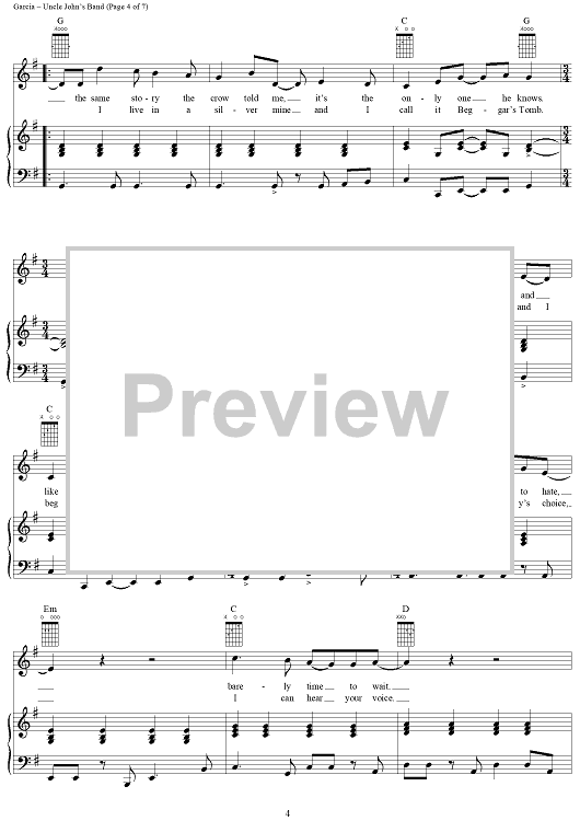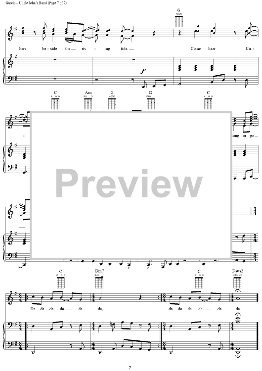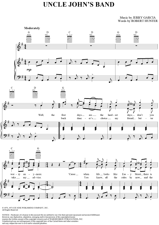 Digital Sheet Music for Uncle John's Band by Jerry Garcia, Robert Hunter, Grateful Dead scored for Piano/Vocal/Chords; id:202273
