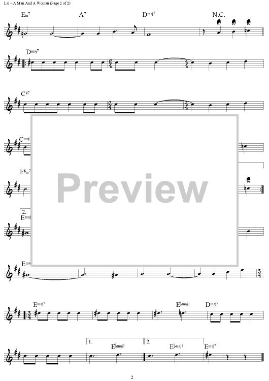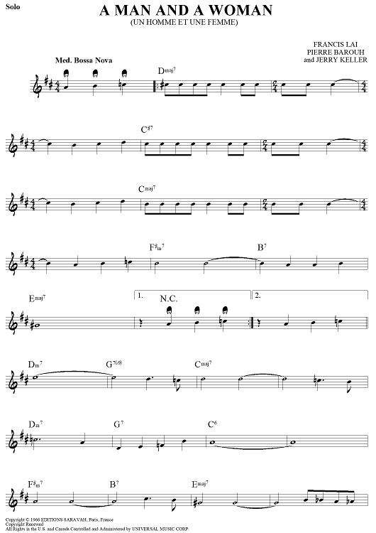 Digital Sheet Music for A Man and a Woman (Un Homme Et Une Femme) by , Francis Lai, Jerry Keller, Pierre Barouh scored for Lead Sheet; id:452087