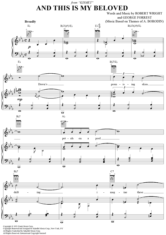 Digital Sheet Music for And This Is My Beloved by Mario Lanza, Percy Faith, George Forrest, Robert Wright, Jerry Vale scored for Piano/Vocal/Chords; id:382290