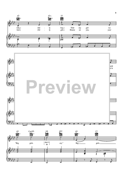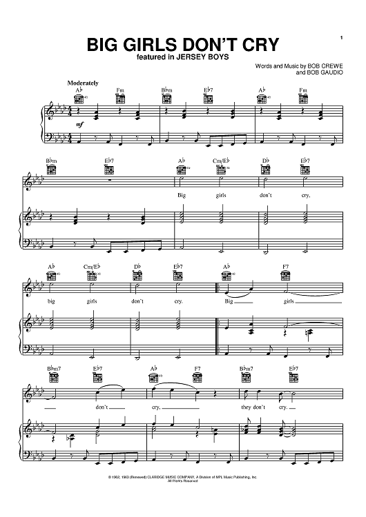 Digital Sheet Music for Big Girls Don't Cry by Bob Crewe, Bob Gaudio, Frankie Valli, The Four Seasons scored for Piano/Vocal/Chords; id:389853