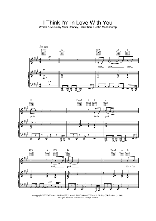 Digital Sheet Music for I Think I'm In Love With You by Jessica Simpson scored for Piano/Vocal/Chords; id:378372