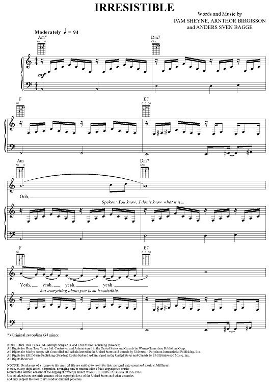 Digital Sheet Music for Irresistible by Arnthor Birgisson, Jessica Simpson, Pam Sheyne, Anders Bagge scored for Piano/Vocal/Chords; id:285353
