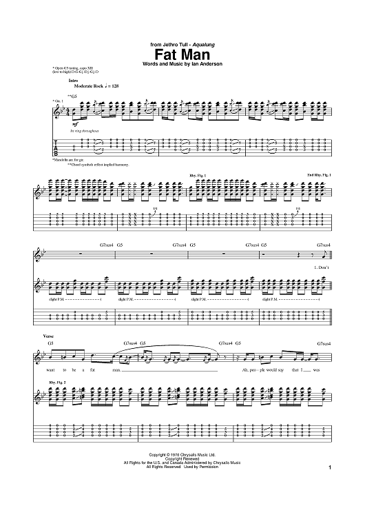 Digital Sheet Music for Fat Man by Ian Anderson, Jethro Tull scored for Guitar Tab; id:387298