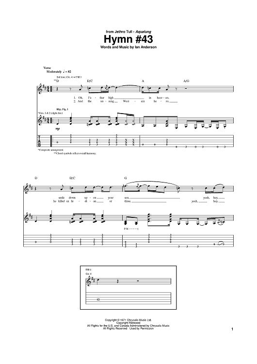 Digital Sheet Music for Hymn #43 by Ian Anderson, Jethro Tull scored for Guitar Tab; id:387288