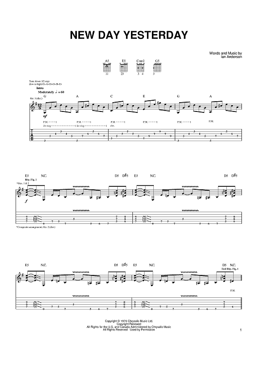 "New Day Yesterday" Sheet Music by Jethro Tull