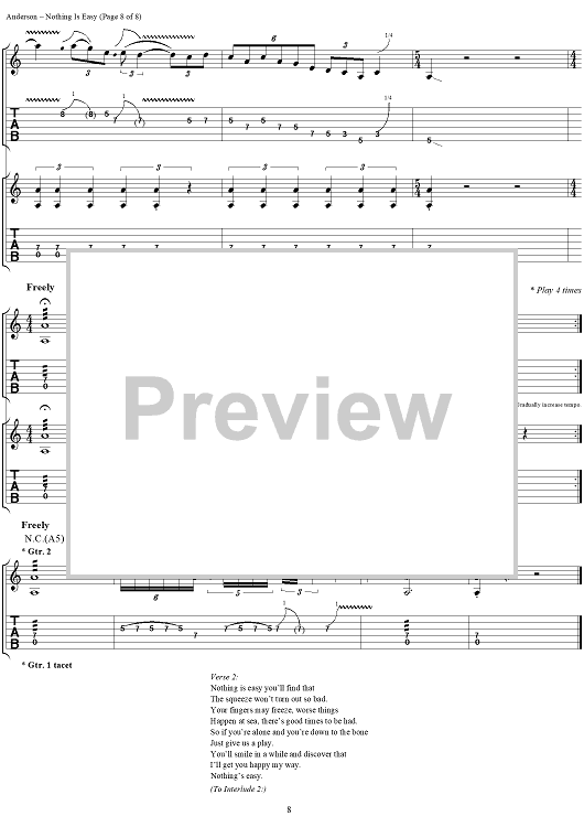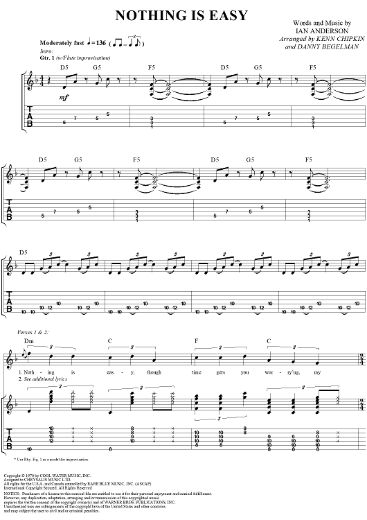"Nothing Is Easy" Sheet Music by Jethro Tull