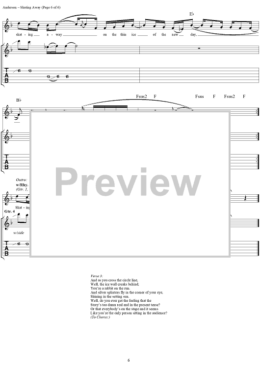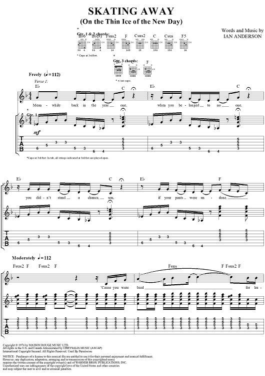 "Skating Away" Sheet Music by Jethro Tull