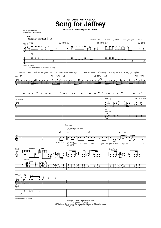 Digital Sheet Music for Song For Jeffrey by Ian Anderson, Jethro Tull scored for Guitar Tab; id:387286