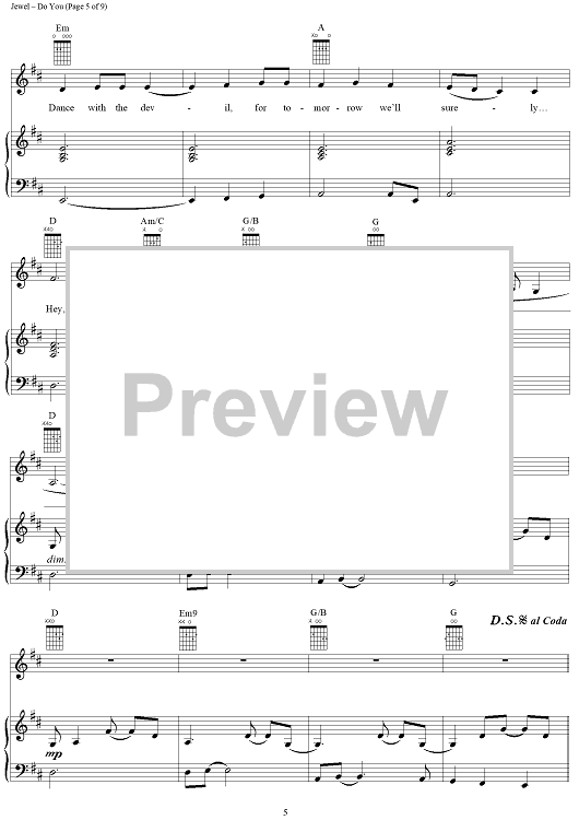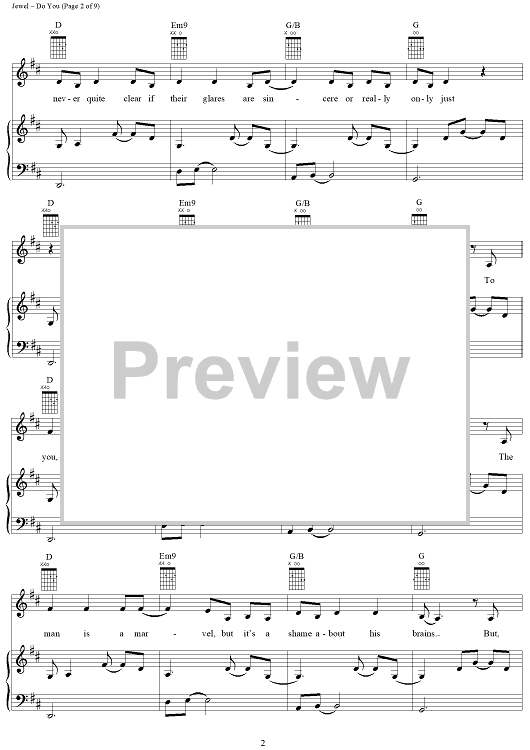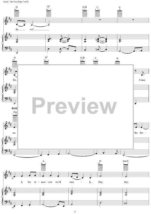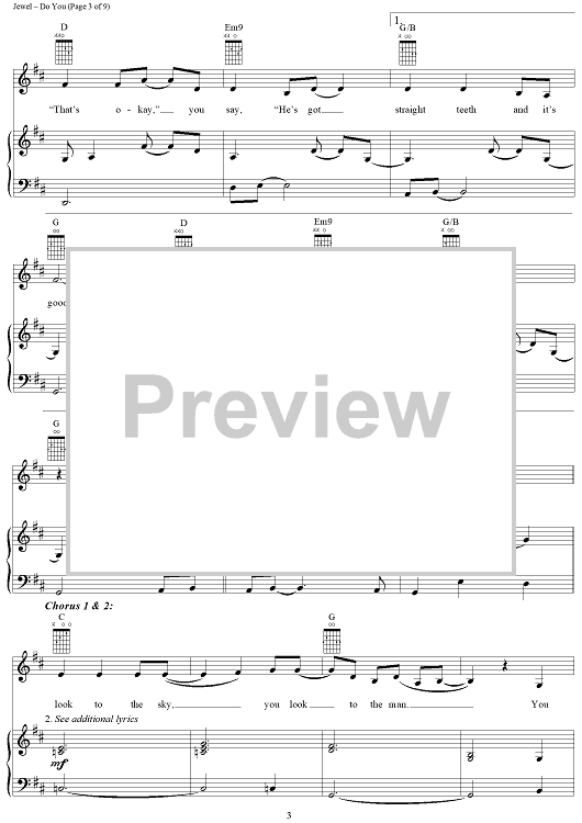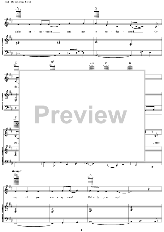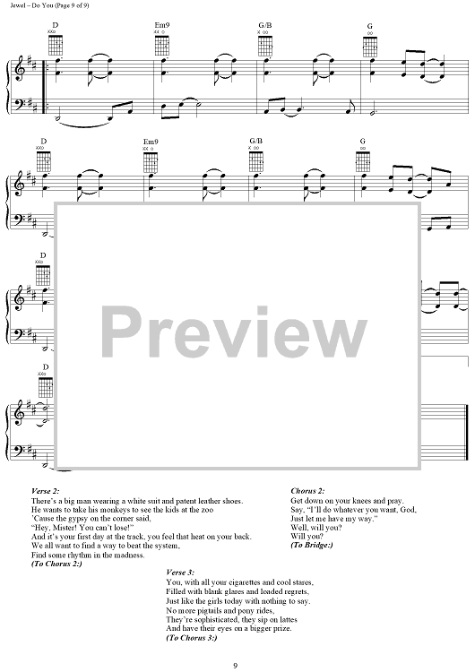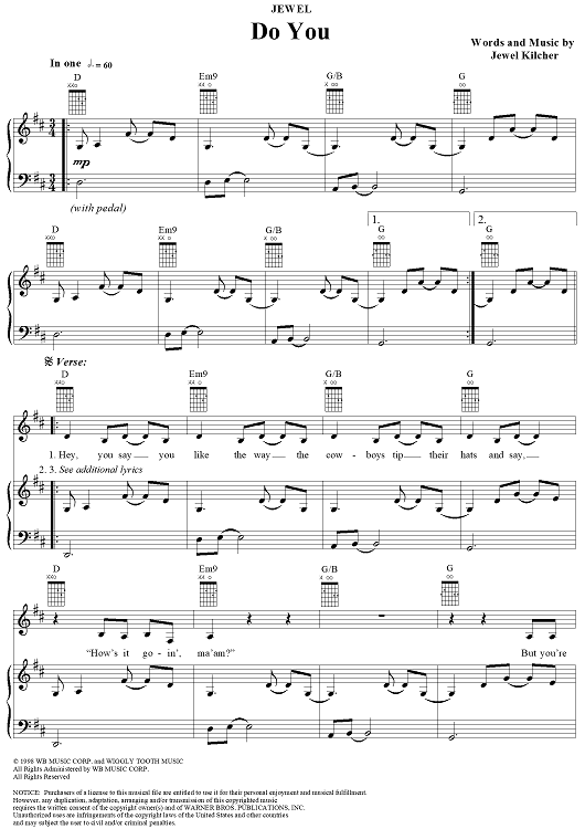 Digital Sheet Music for Do You by Jewel scored for Piano/Vocal/Chords; id:110936