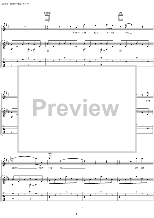 Digital Sheet Music for Fat Boy by Jewel scored for Guitar Tab/Vocal; id:112971