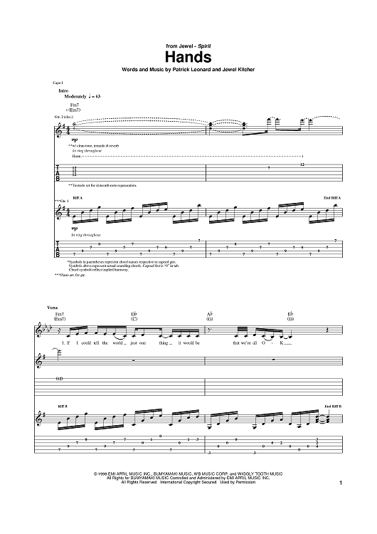 Digital Sheet Music for Hands by Jewel, Patrick Leonard scored for Guitar Tab; id:383649