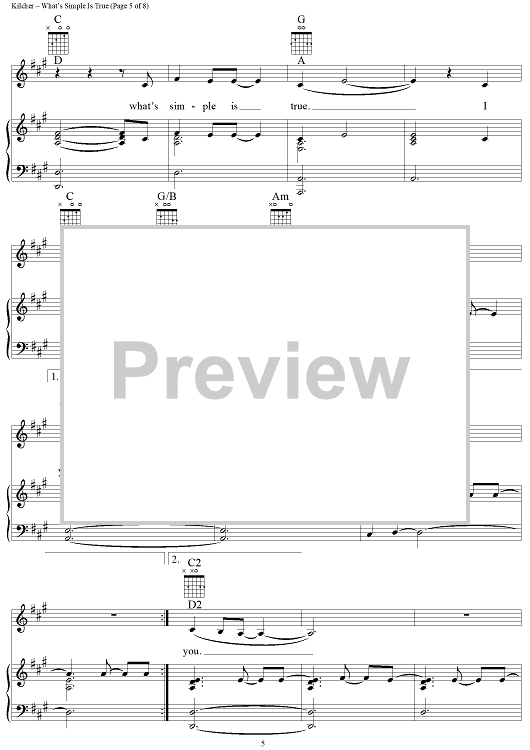 Digital Sheet Music for What's Simple Is True by Jewel scored for Piano/Vocal/Chords; id:111049