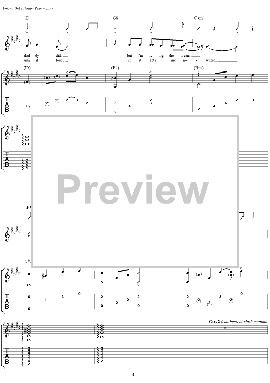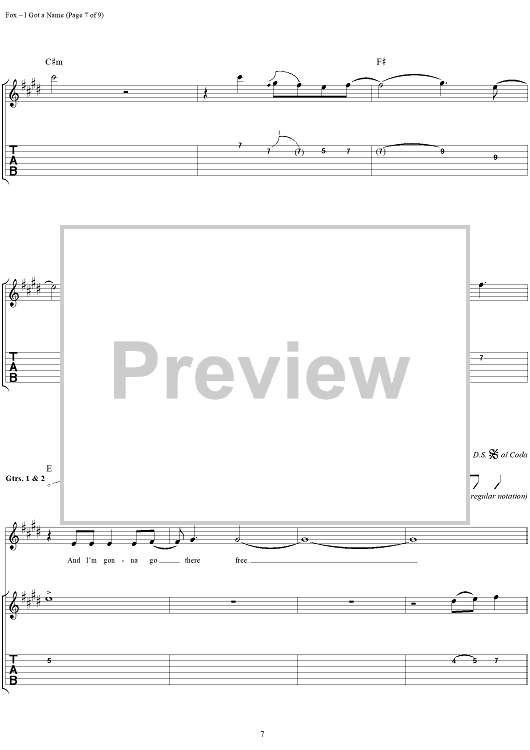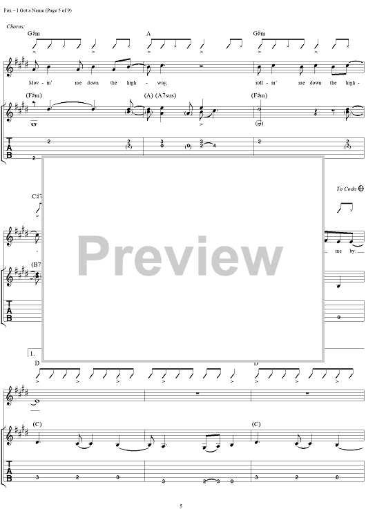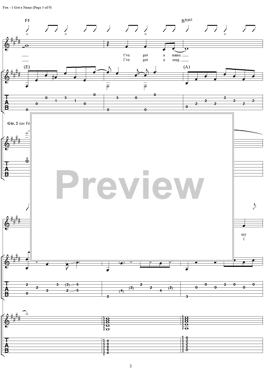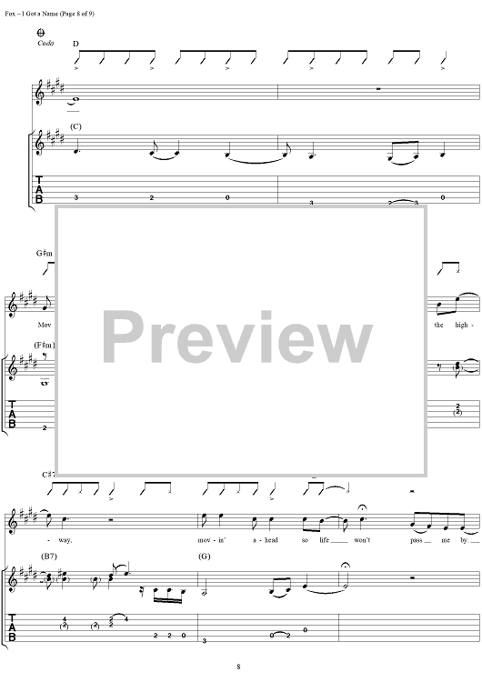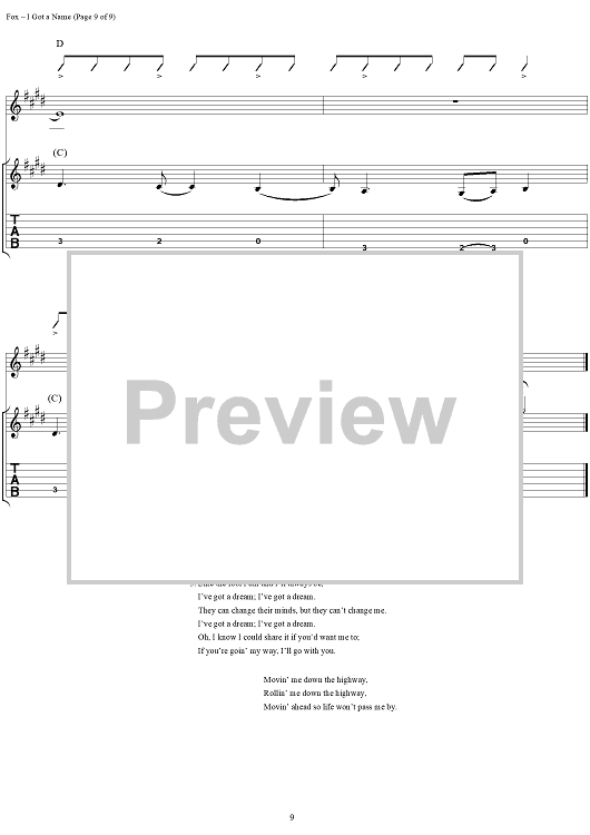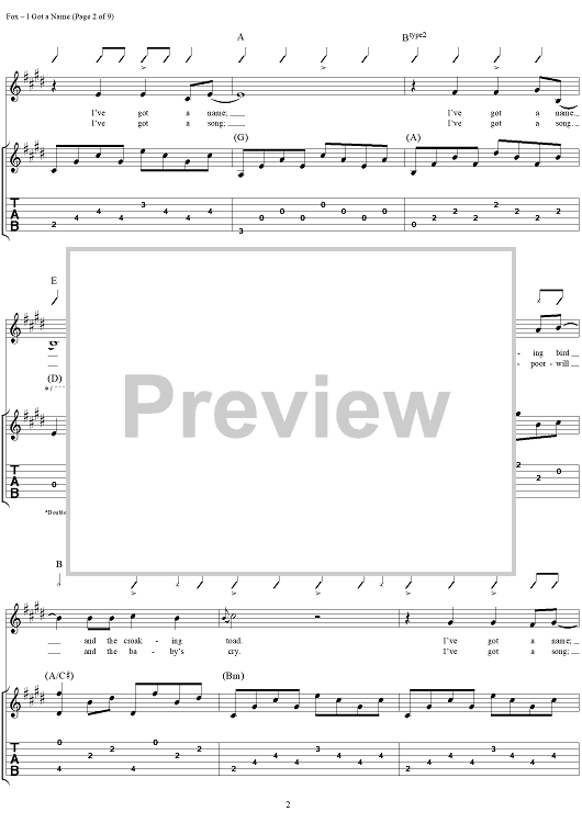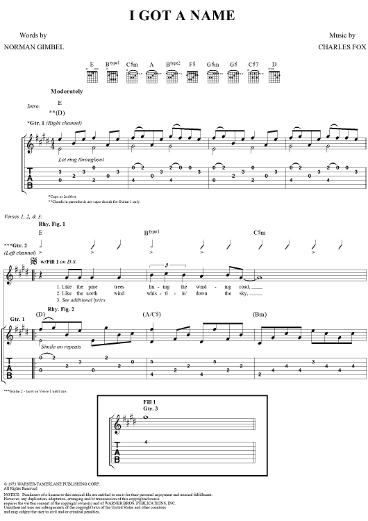Digital Sheet Music for I Got a Name by Jim Croce, Norman Gimbel, Charles Fox scored for Guitar Tab/Vocal; id:285487