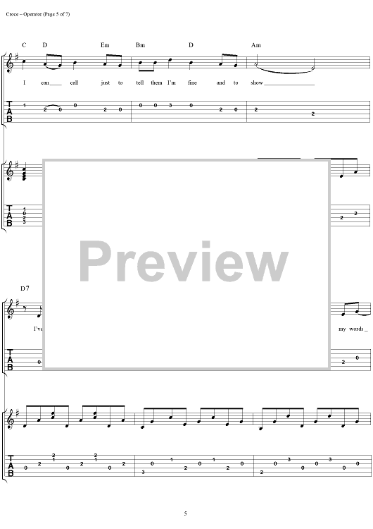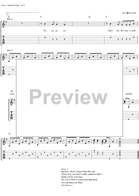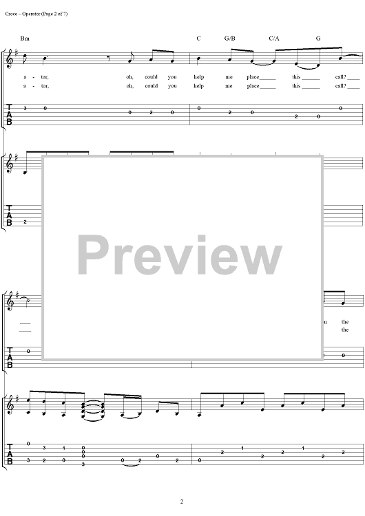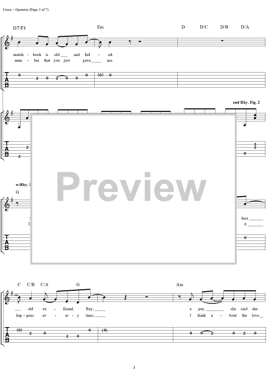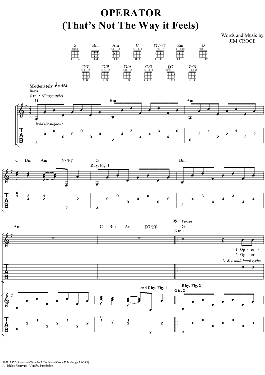 "Operator (That's Not the Way it Feels)" Sheet Music by Jim Croce