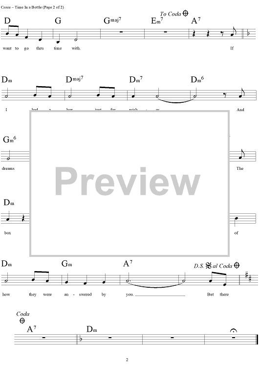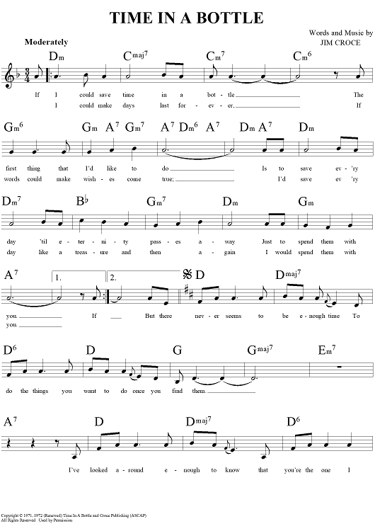 Digital Sheet Music for Time In A Bottle by Jim Croce, Vern Gosdin scored for Lead Sheet; id:272043