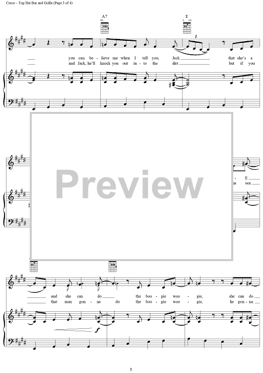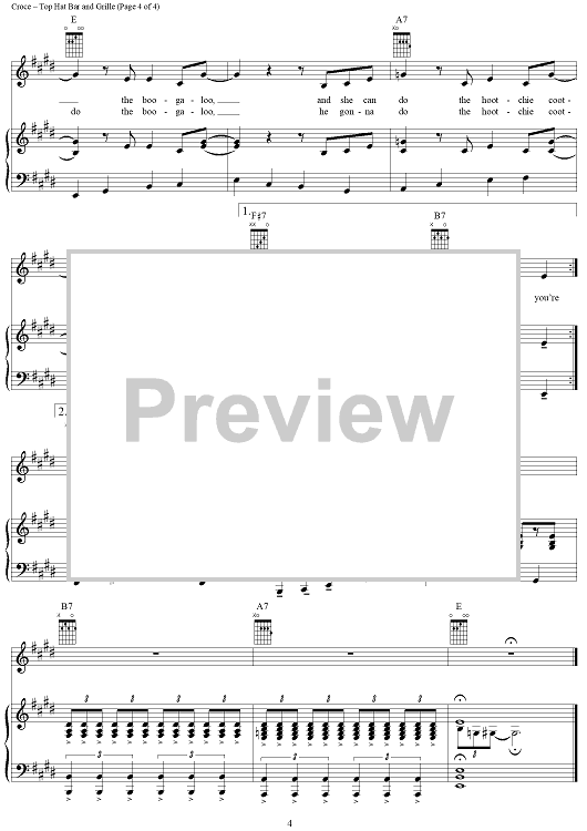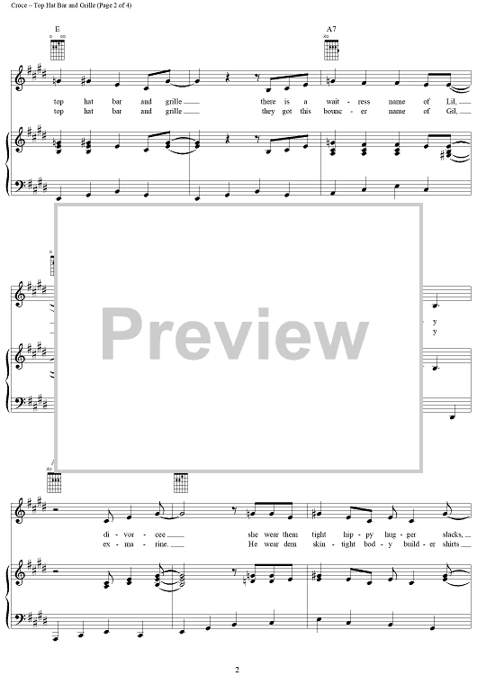 Digital Sheet Music for Top Hat Bar And Grille by Jim Croce scored for Piano/Vocal/Chords; id:272059