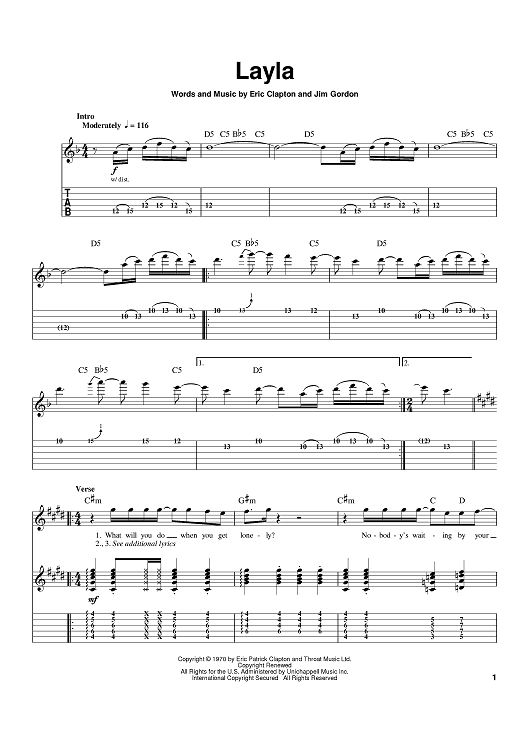 Digital Sheet Music for Layla by Eric Clapton, Jim Gordon, Derek and the Dominos scored for Guitar Tab; id:374236