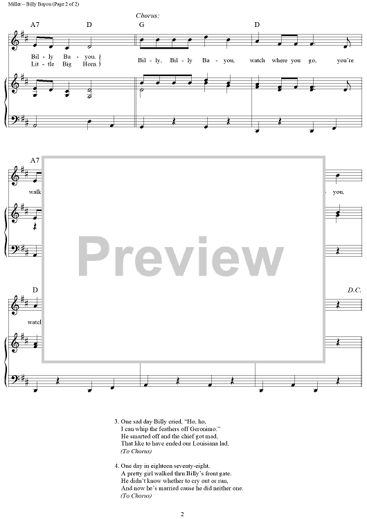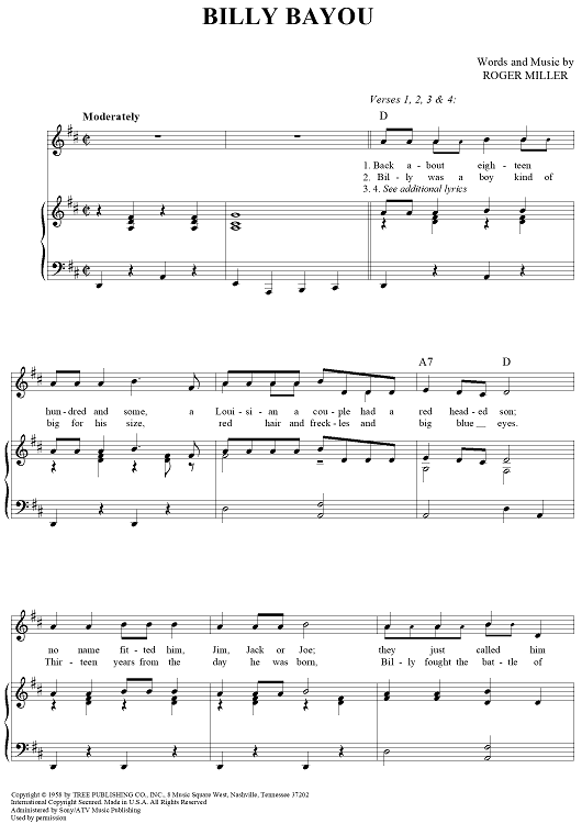 Digital Sheet Music for Billy Bayou by Roger Miller, Jim Reeves scored for Piano/Vocal/Chords; id:363089