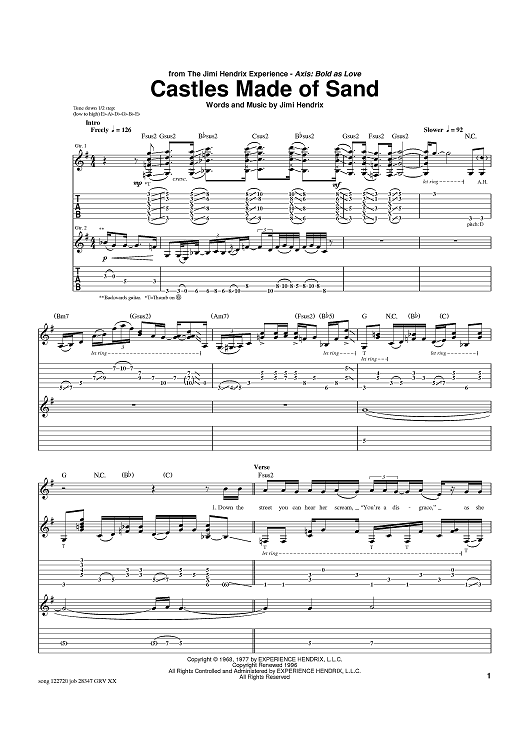 Digital Sheet Music for Castles Made Of Sand by Jimi Hendrix, Red Hot Chili Peppers scored for Guitar Tab; id:372869
