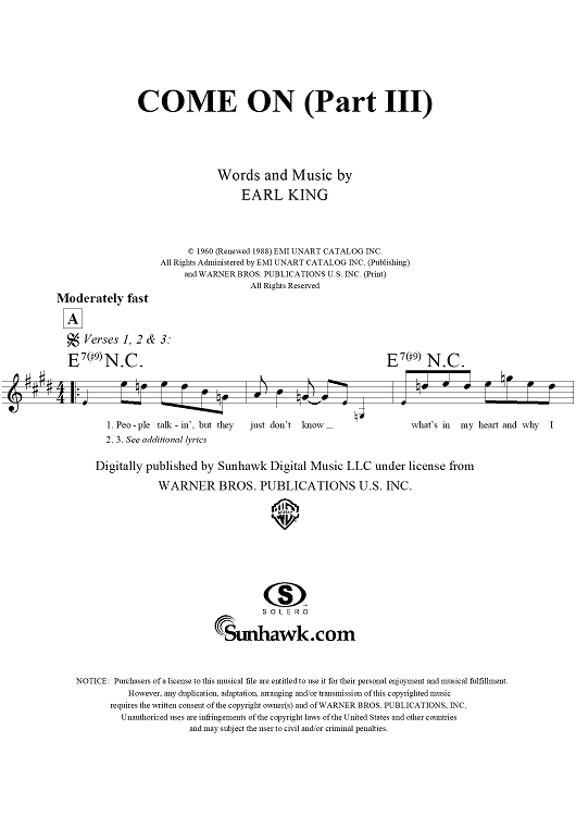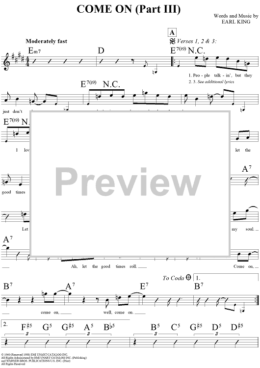 Digital Sheet Music for Come On (Part III) by Earl King, Jimi Hendrix scored for Lead Sheet; id:290848