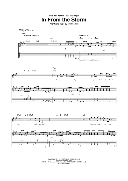 Digital Sheet Music for In From The Storm by Jimi Hendrix scored for Guitar Tab; id:385257