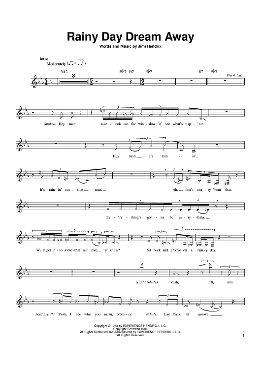 "Rainy Day Dream Away" Sheet Music by Jimi Hendrix