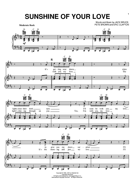 "Sunshine Of Your Love" Sheet Music by Eric Clapton