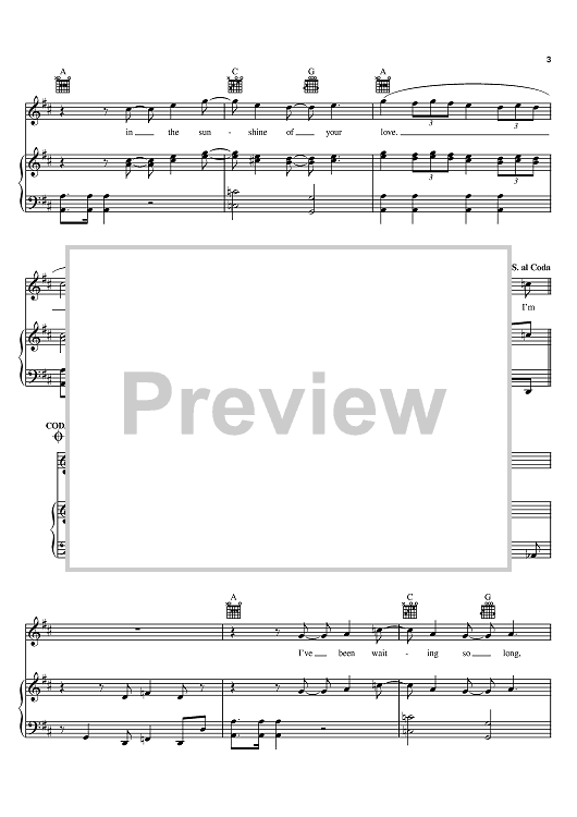 Digital Sheet Music for Sunshine Of Your Love by Eric Clapton, Cream, Pete Brown, Jack Bruce, Jimi Hendrix, Living Colour scored for Piano/Vocal/Chords; id:375419