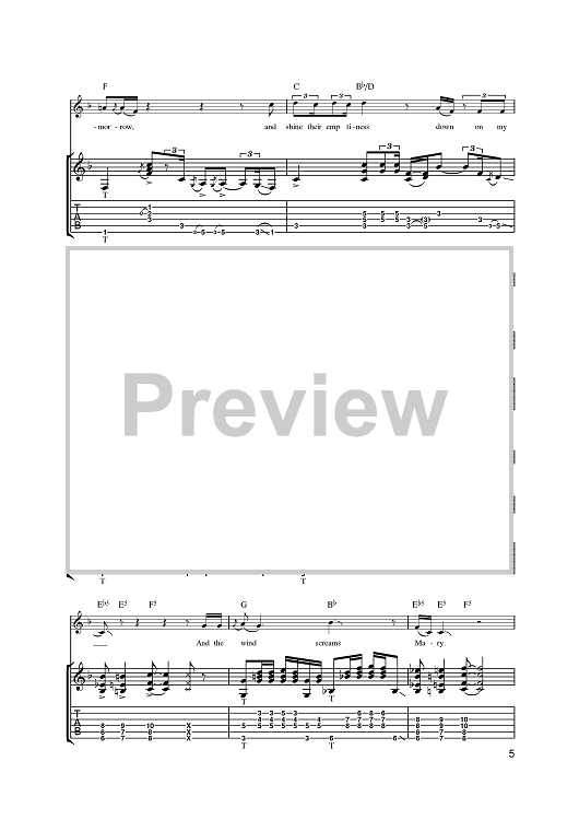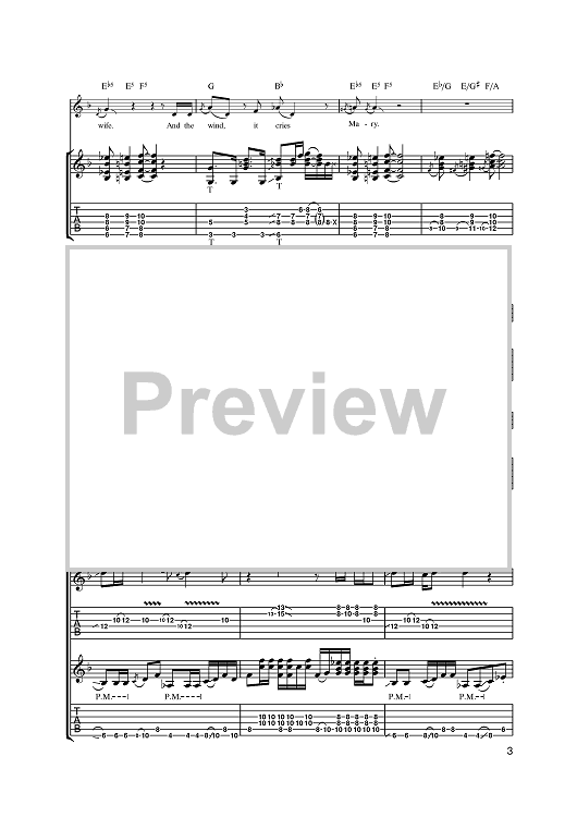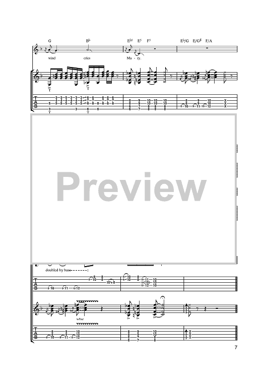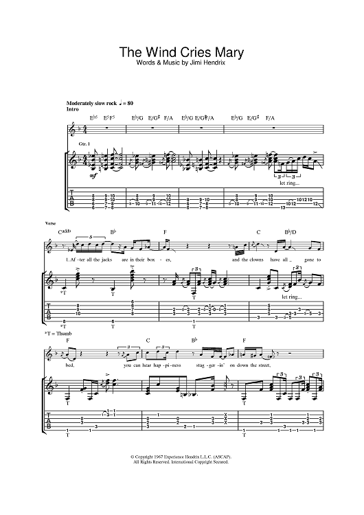 Digital Sheet Music for The Wind Cries Mary by Jimi Hendrix scored for Guitar Tab; id:387144