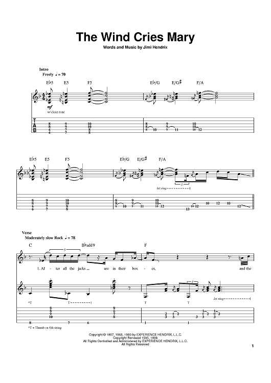 Digital Sheet Music for The Wind Cries Mary by Jimi Hendrix scored for Guitar Tab; id:388193
